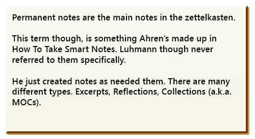 It wasn't sustainable, to say the least, especially when I have a baby, a toddler, and a 9-5 job.Yet, I didn't want to stop.I know one video shouldn't take 3 - 4 weeks to write.If I can figure out how to create content faster, I know I can fulfill my potential.So, I kept looking for the magic bullet that could make content creation easy and sustainable. I tried everything: Tiago Forte's Building a Second Brain. Systematizing my content creation with Notion templates. But, nothing quite worked for me.It wasn't until I read How To Take Smart Notes by Sönke Ahrens that things began to fall into place.Now, the book is great for creating awareness of Niklas Luhmann's system. But, I found that it was hard to follow and practically put everything together.So, I went to the primary source.Thankfully, Niklas Luhmann wrote a paper on how his zettelkasten worked. And, his whole zettelkasten is online! The only thing is, his paper, Communicating with Slip Boxes is not the easiest to read.But after reading it 50 times over a few months (yes, I really really wanted what he had), I've rephrased his arguments into the following first principles.